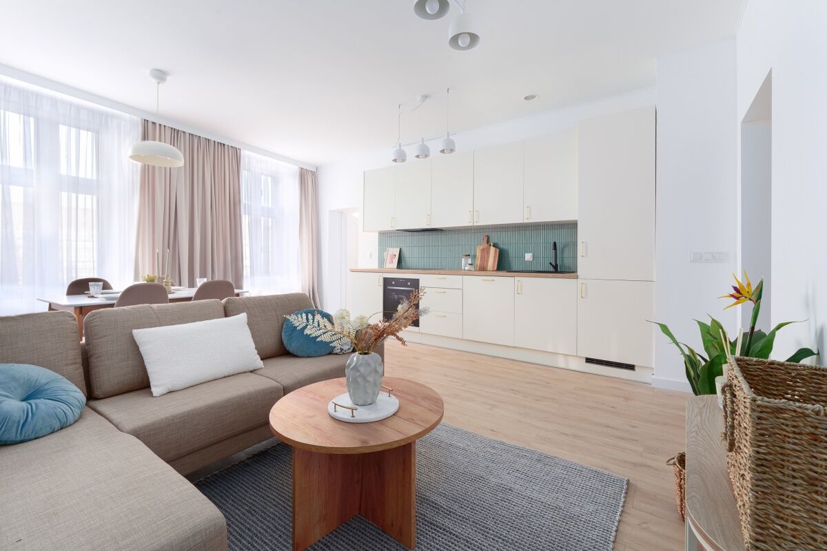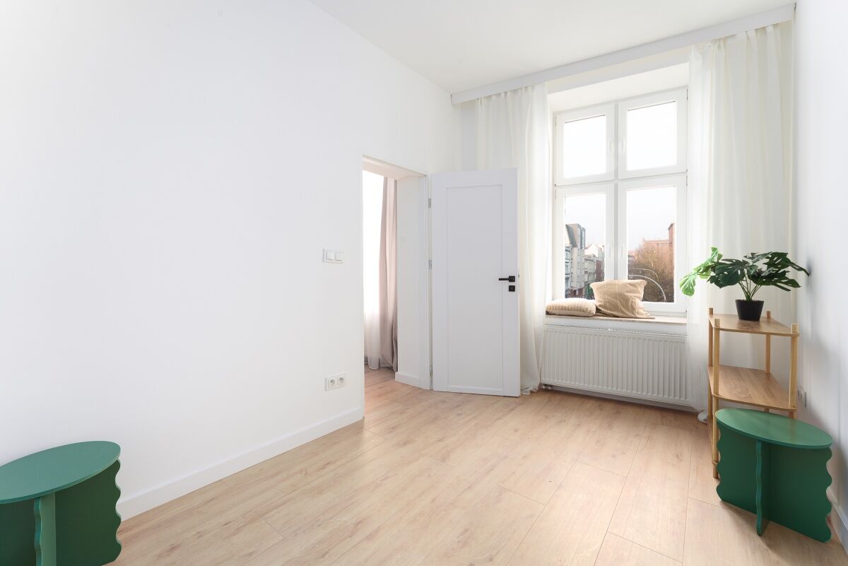 To mieszkanie jest idealnym połączeniem klimatu kamienicy i nowoczesnego wykończenia. Zachwyca już od wejścia: wysokie sufity, duże okna oraz elegancka sztukateria nadają wnętrzu ponadczasowy charakter, przestrzeń i światło. Całość została przygotowana w spójnym stylu, z dbałością o detale i funkcjonalność — bez przypadkowych rozwiązań.