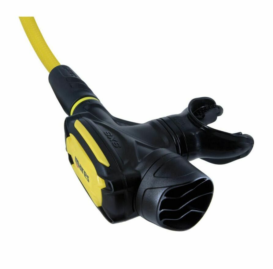 Oktopus Mares SXS jest wyposażony w zagięty bypass i dużą średnicę, która zapewnia duży przepływ powietrza. Ta unikalna cecha, w połączeniu z opatentowanym przez Maresa systemem Vortex Assisted Design (VAD), zapewnia nurkom komfortowy przepływ powietrza na każdej głębokości.