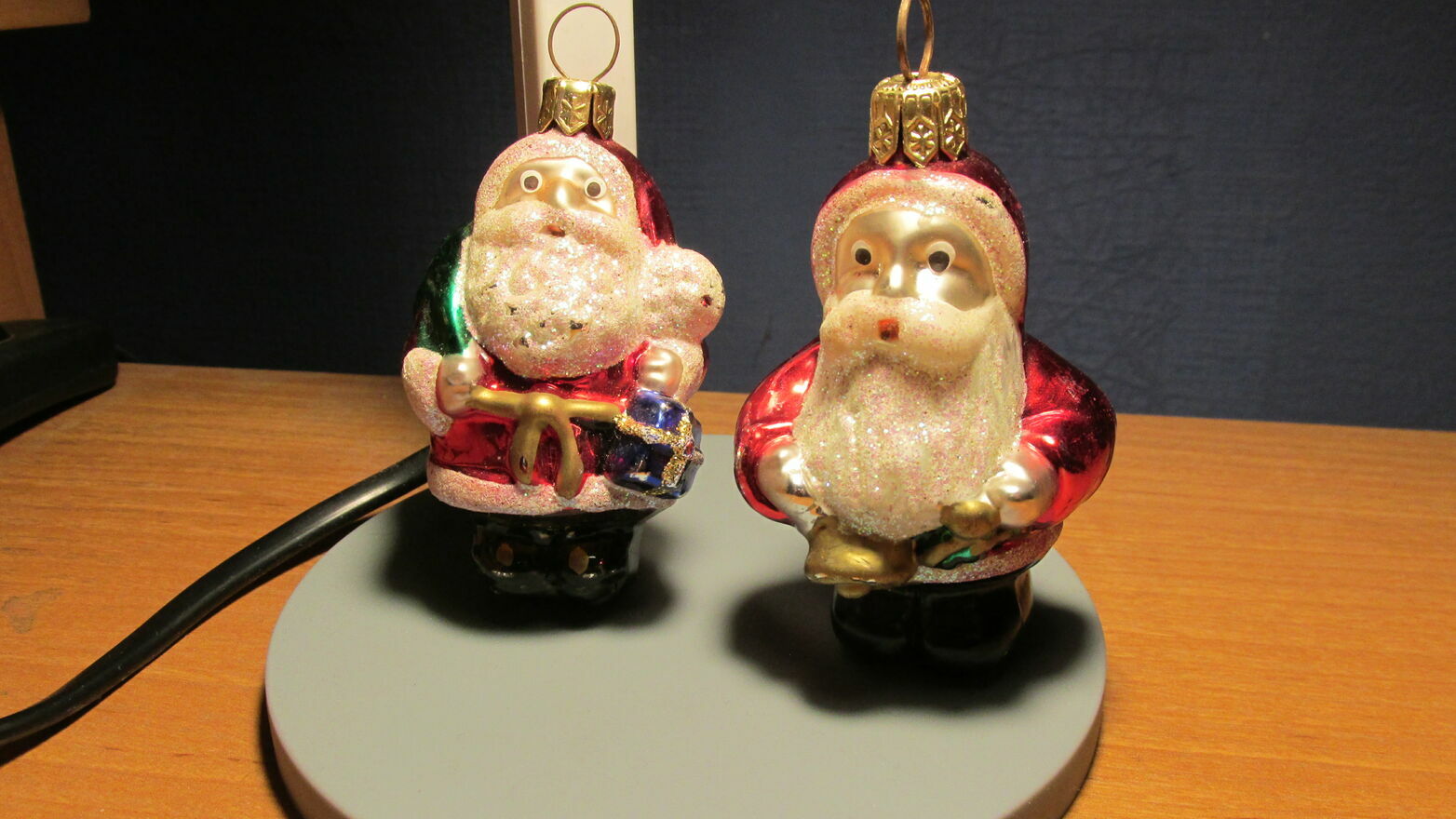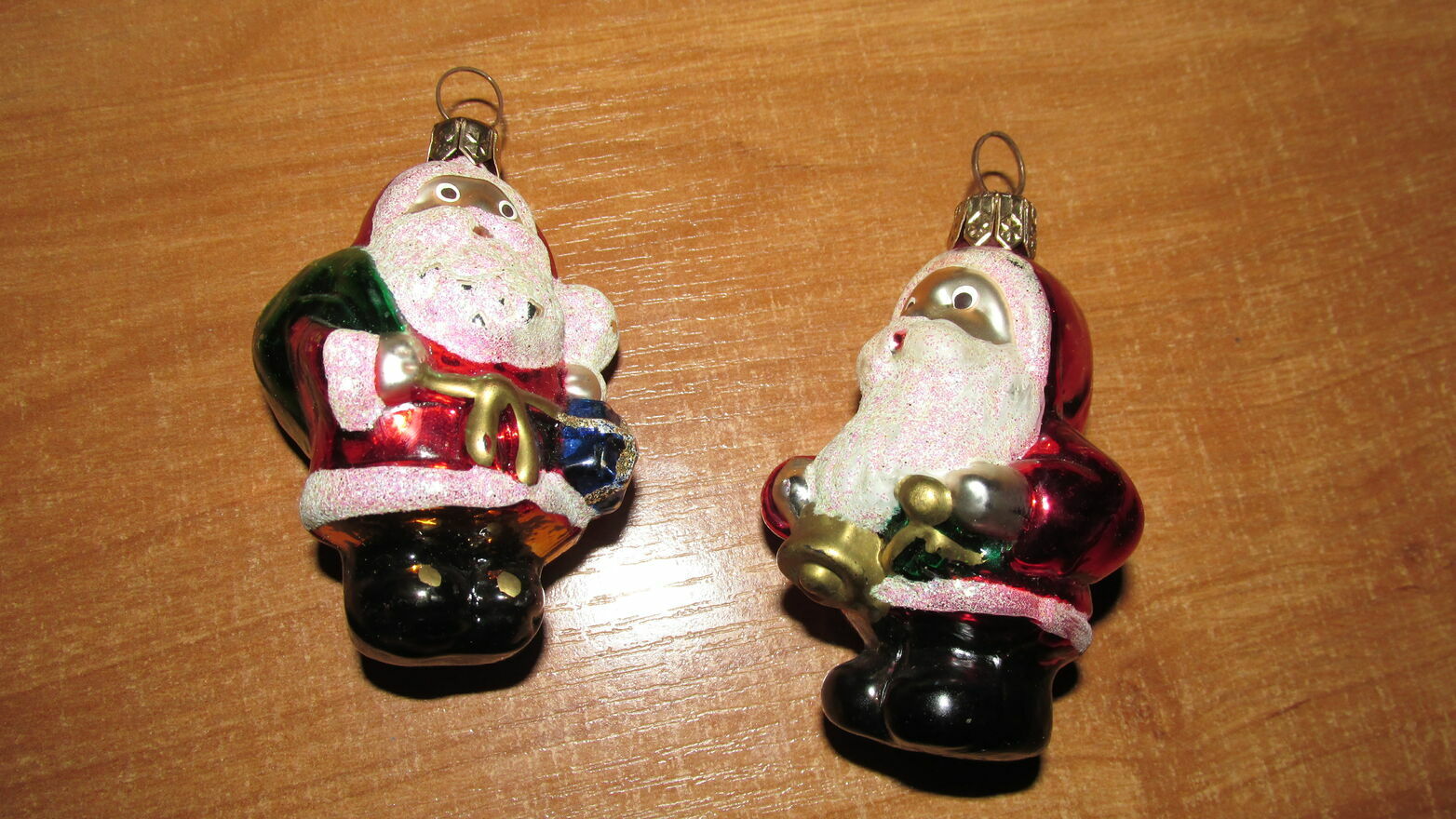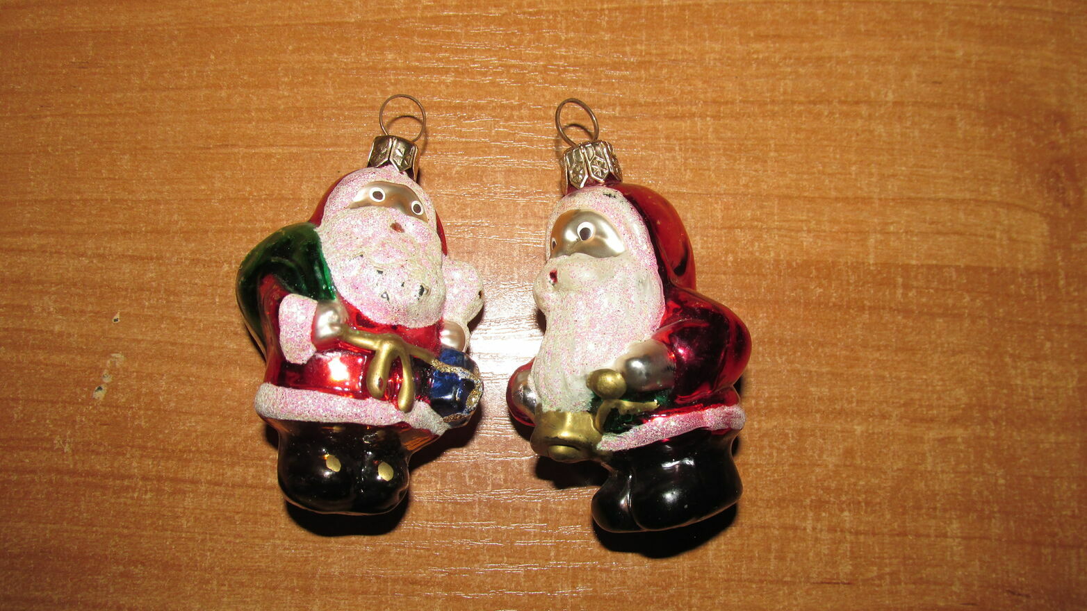 Dwie bombki - Mikołaje w stanie bardzo dobrym (raczej czasy PRL); wysokość około 7cm.Marian