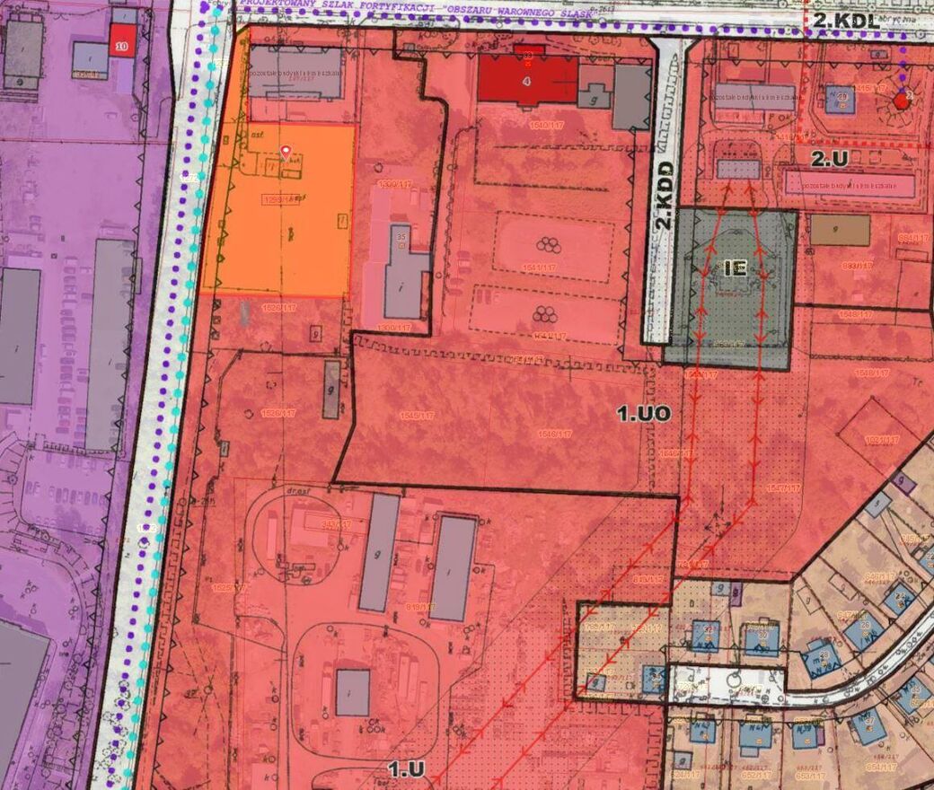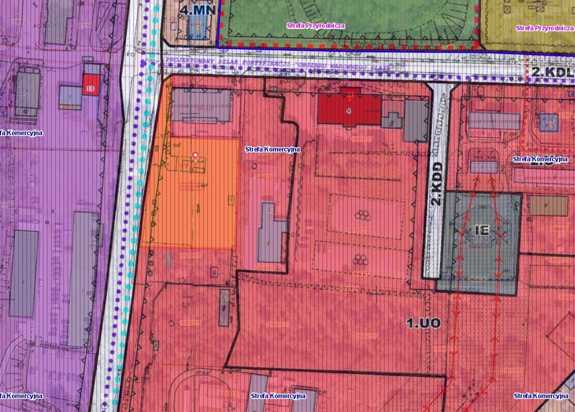 b) położonych w granicach terenu 2.U wyznacza się od terenu 2.KDL, 2.KDD,