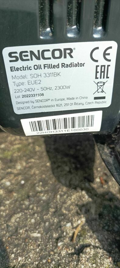 Grzejnik olejowy Sencor SOH 3311BK o mocy 2300W z 11 żebrami. Urządzenie zapewnia efektywne ogrzewanie pomieszczeń. Posiada regulację temperatury i moc grzewczą do 2500W.Uzywany, Sprawny, czarny