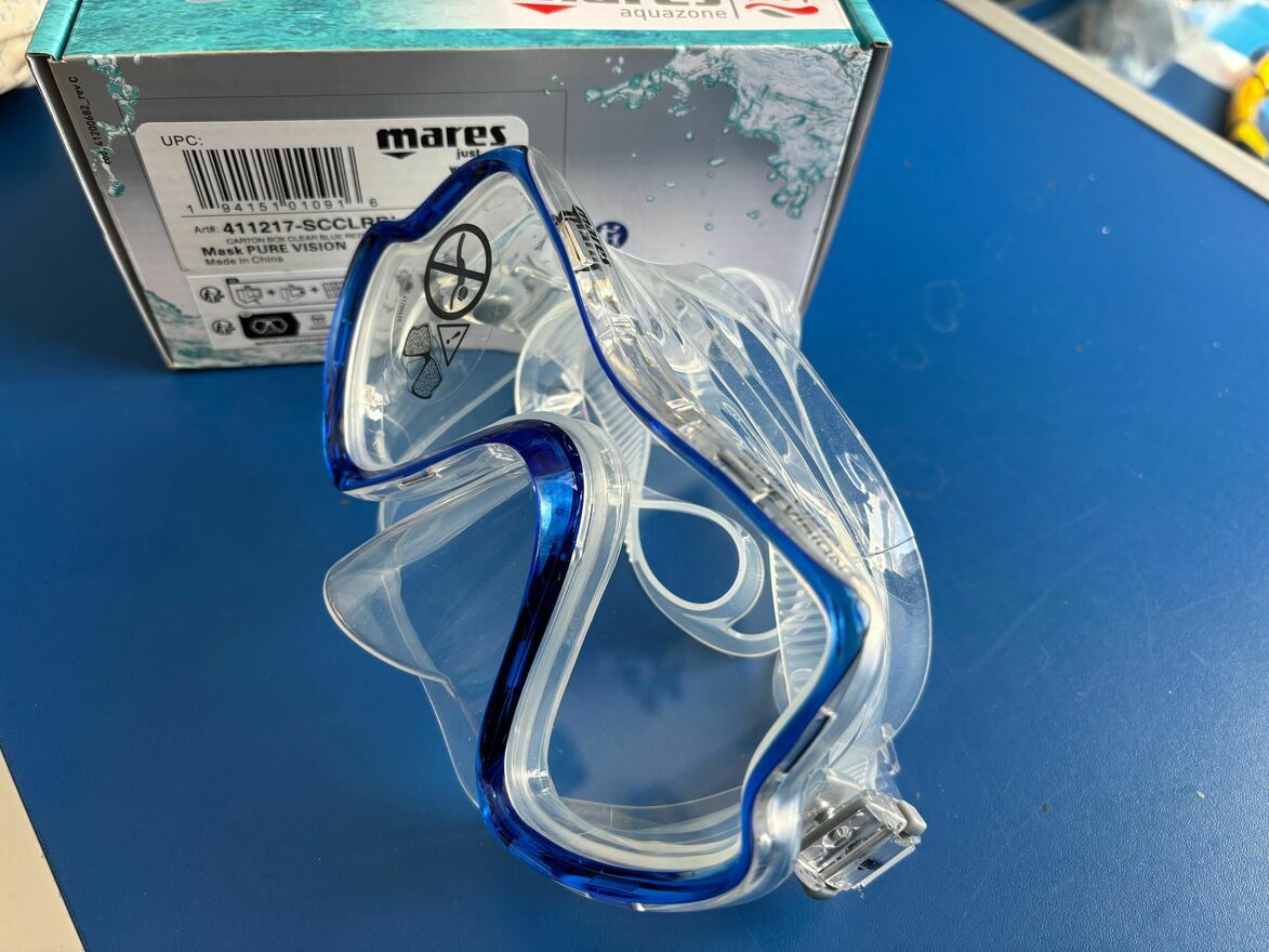 Maska do Nurkowania/ snorkelingu Pure Vision czarny silikon i czarna ramka lub transparenty silikon niebieska ramka - do wyboru - proszę wskazać przy zakupie, którą mamy wysłać - jeśli nie zostanie wskazana wyślemy losowo.Maska do nurkowania Pure Vision to jeden z najbardziej udanych produktów firmy Mares. Posiada ergonomiczną i lekką konstrukcję, co sprawia, że jest ceniona zarówno wśród zaawansowanych, jak i początkujących nurków.