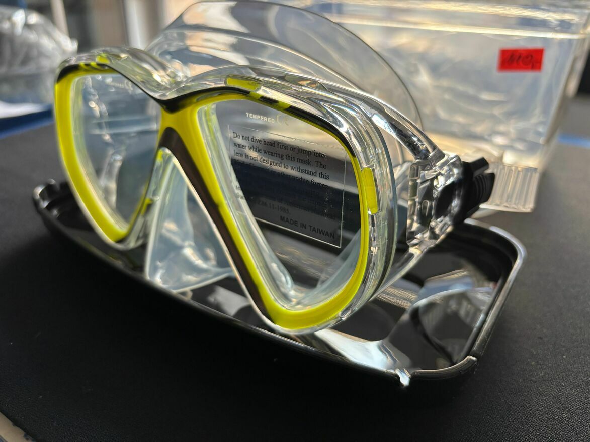 W ofercie profesjonalna maska nurkowa Vision, bezbarwny silikon, żółta. Jest wykonana z silikonu a nie z gumy, a szkło jest hartowane. Używamy tych masek do nurkowania profesjonalnego z butlą nurkową na duże głębokości.Instrukcja użycia masek nurkowych.