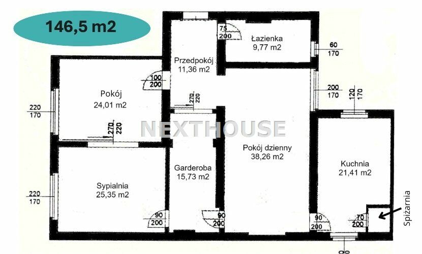 **Salon (38,2 m²)** z dębowym parkietem barwionym, ścianami pokrytymi wysokiej jakości farbami lateksowymi i oryginalną drewnianą stolarką drzwiową. To przestrzeń, która zapewni wygodę i elegancję na co dzień.