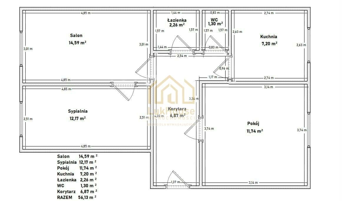 - powierzchnia: 56,13m