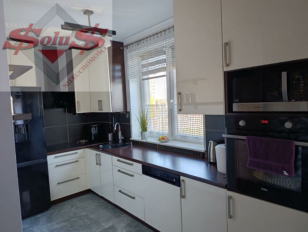 W mieszkaniu pozostają meble kuchenne wraz ze sprzętem AGD.