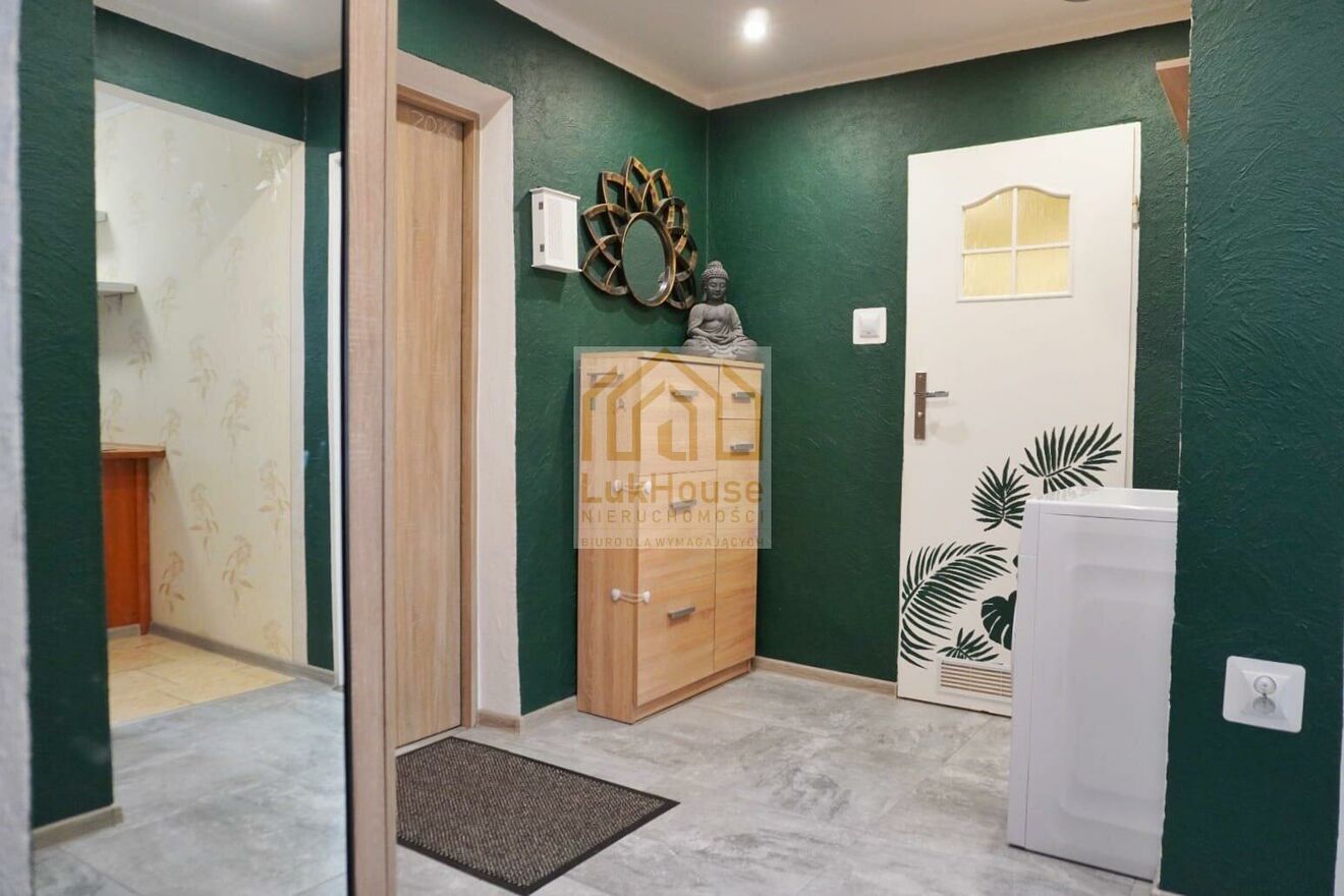 - Przestronny przedpokój pełniący rolę łącznika wszystkich pomieszczeń, z miejscem na szafę i praktyczny schowek.