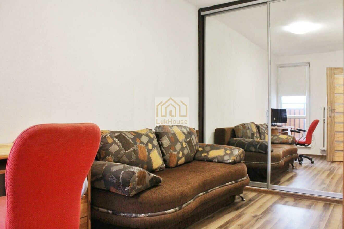 Salon jest słoneczny i ustawny, wyposażony w zabudowę RTV oraz wygodną kanapę. Z pokoju dziennego prowadzi wyjście na balkon.Sypialnia posiada balkon francuski, co zapewnia dodatkowe doświetlenie oraz poczucie przestrzeni. W pokoju znajduje się pojemna zabudowana szafa, wersalka oraz komfortowe biurko do pracy zdalnej.