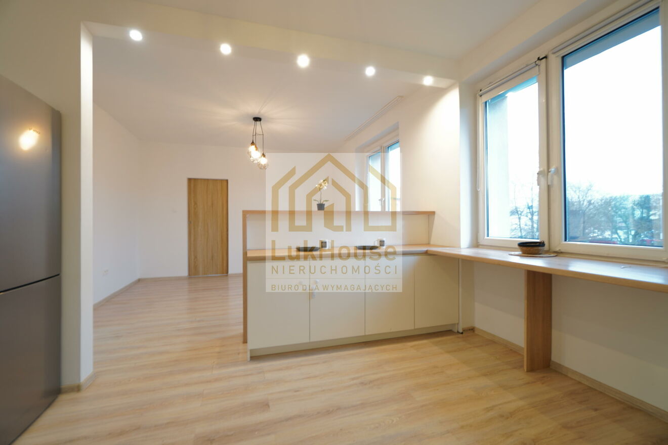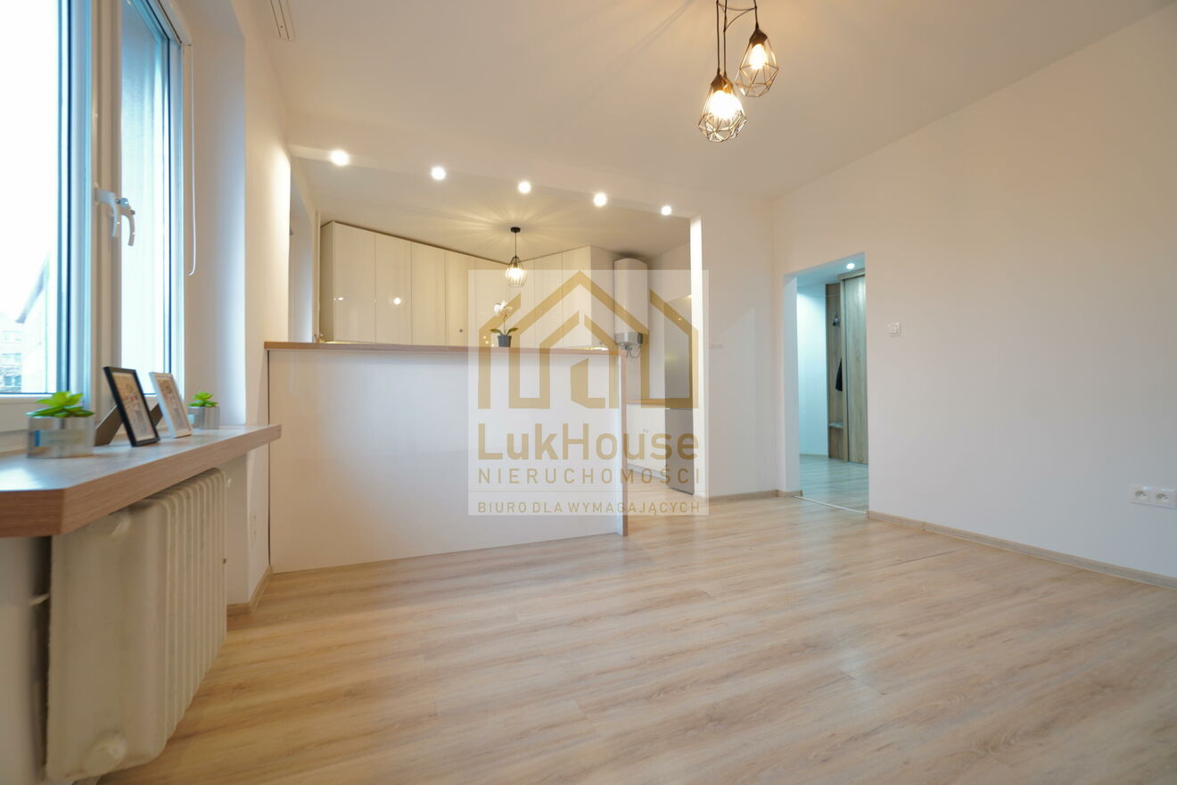 Wyłącznie u nas! Na sprzedaż oferujemy atrakcyjne i wyremontowane 3-pokojowe mieszkanie o przemyślanym i funkcjonalnym układzie, które jest usytuowane na wygodnym 1 piętrze w zadbanym budynku po termomodernizacji. To doskonała propozycja zarówno dla rodzin, par, jak i osób poszukujących komfortowego lokum gotowego do wprowadzenia bez konieczności ponoszenia dodatkowych kosztów. Lokal mieszkalny składa się z nowoczesnego salonu połączonego z aneksem kuchennym. Kuchnia została zaprojektowana z myślą o wygodzie codziennego użytkowania i wyposażona jest w niezbędne sprzęty AGD, co umożliwia natychmiastowe korzystanie z przestrzeni bez potrzeby dodatkowego doposażenia. Otwarty układ salonu i kuchni tworzy przyjemną strefę dzienną, idealną zarówno do odpoczynku, jak i przyjmowania gości. W mieszkaniu znajdują się dwa niezależne pokoje. Jeden z nich został zaaranżowany jako przytulna sypialnia, w której mieści się łóżko oraz duża, funkcjonalna szafa w zabudowie, oferująca sporo miejsca do przechowywania. Drugi pokój może pełnić funkcję pokoju dziecięcego, gabinetu do pracy zdalnej lub dodatkowej sypialni w zależności od indywidualnych potrzeb mieszkańców. Łazienka została wykończona w nowoczesnym stylu i wyposażona w prysznic z odpływem liniowym, co zapewnia komfort oraz estetyczny wygląd. Osobne WC stanowi duży atut, szczególnie przy większej liczbie domowników. Przedpokój jest przestronny i posiada pojemną szafę w zabudowie, co dodatkowo zwiększa funkcjonalność mieszkania. Nieruchomość jest wyposażona w centralne miejskie ogrzewanie, zapewniając wygodę i stabilne koszty utrzymania. Ciepła woda użytkowa podgrzewana jest za pomocą bojlera elektrycznego. Do lokalu mieszkalnego przynależy piwnica, która stanowi dodatkową przestrzeń do przechowywania, a także dostęp do wspólnego strychu, z którego korzysta trzech sąsiadów. Nieruchomość nie wymaga żadnych nakładów finansowych i jest gotowa do wprowadzenia.Lokal mieszkalny składa się z: