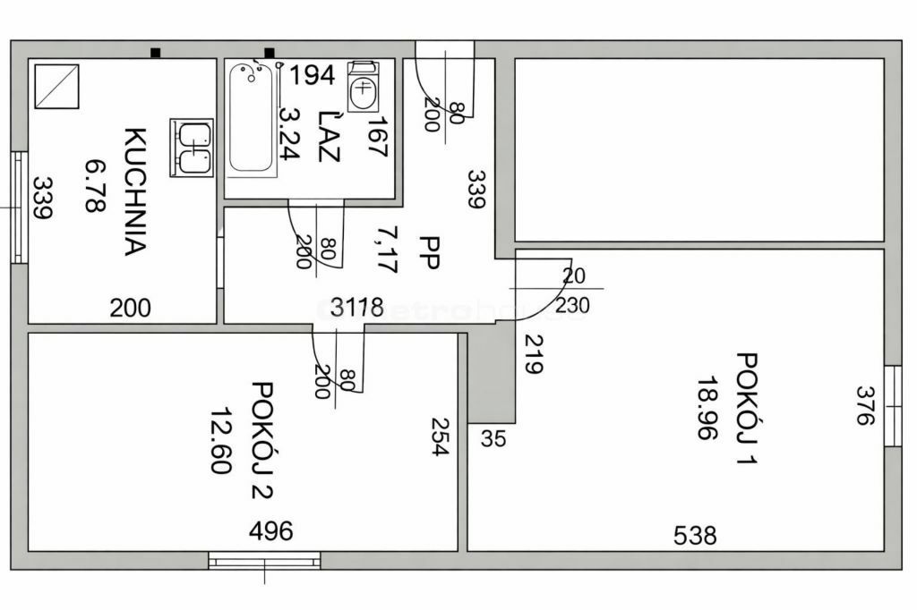 Obecny układ pomieszczeń daje duży potencjał do modernizacji istnieje możliwość wydzielenia trzeciego pokoju, co czyni ofertę atrakcyjną zarówno dla rodziny, jak i inwestora szukającego mieszkania pod wynajem.