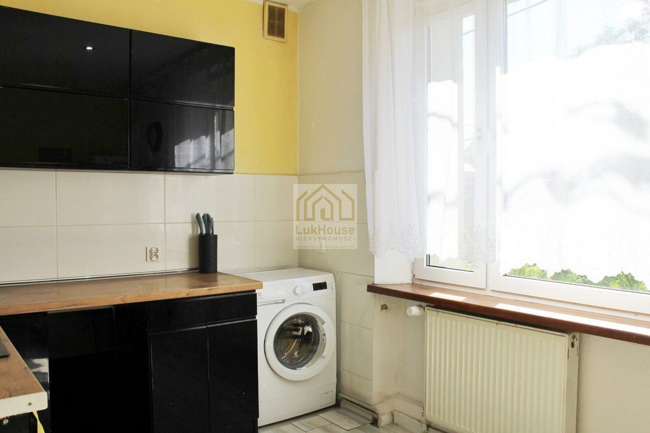 Kuchnia jest w pełni wyposażona w zabudowę kuchenną, piekarnik oraz lodówka pozostają do dyspozycji przyszłego właściciela. Dodatkowym atutem jest funkcjonalny układ łazienki z wanną oraz osobne WC, co znacząco podnosi komfort codziennego użytkowania.