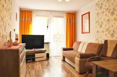 Dobrze wyposażone mieszkanie dwupokojowe: - duży pokój: rogówka, stolik, meble; wyjście na duży balkon - mały ...