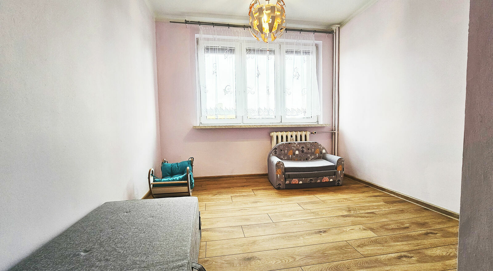Pokój z balkonem francuskim i garderobą, idealny na sypialnię lub pokój dziecka - panele wymagają wymiany