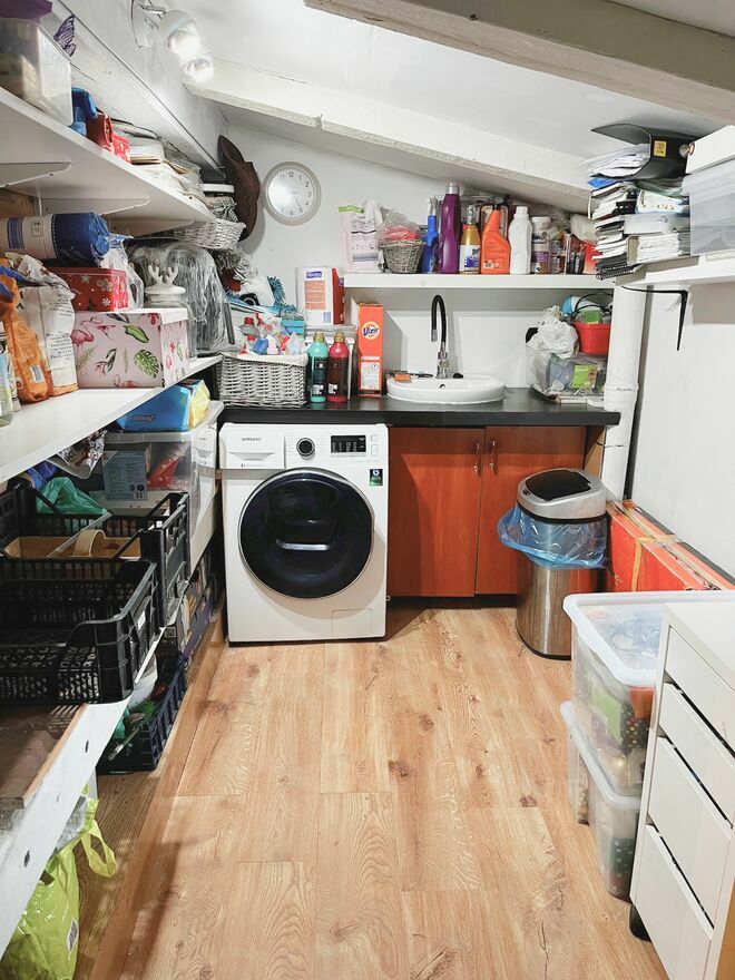 Do mieszkania przynależy osobna pralnia/pomieszczenie gospodarcze (5,6 m²), piwnica oraz dostęp do dużego strychu.