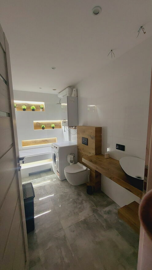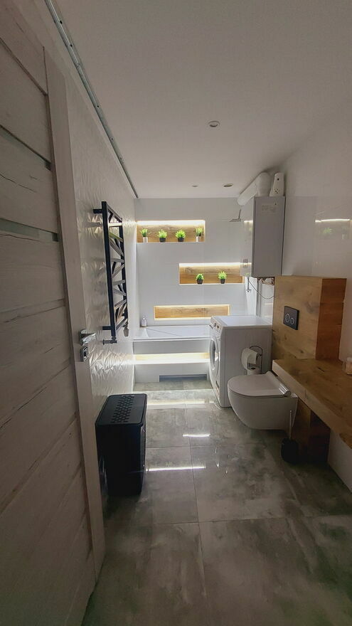 - Łazienka i przedpokój z ogrzewaniem podłogowym, nowe instalacje sanitarne łazienka zachwyca swoim klimatem, to przestrzeń dopracowana w najmniejszych szczegółach. Nastrojowe oświetlenie tworzy wyjątkowy klimat