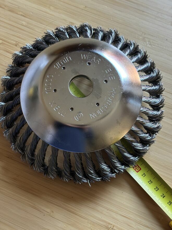 Teraz jest najlepszy moment, żeby pomyśleć o wiosennym czyszczeniu podjazdu i chodników, poradzi sobie nawet z grubszymi łodygami czy gałązkami. Zakup będzie naprawdę trafiony. Szczotka jest bardzo solidna, ciężka, wykonana z grubego skręcanego drutu stalowego — nie jest to lekka, marketowa wersja.