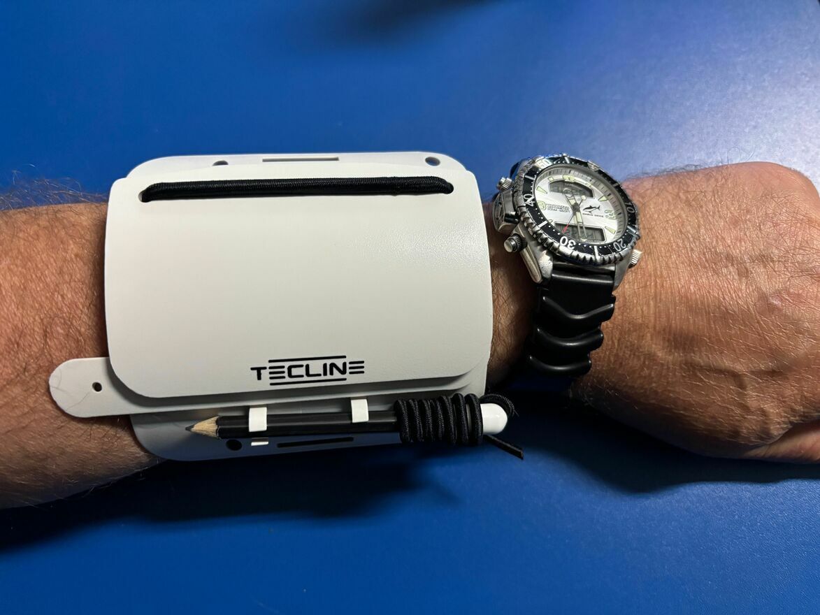 Tabliczka do pisania „warstwowa", z ołówkiem zakładana na rękę. Trzy warstwy pozwalają na zapisanie wielu potrzebnych informacji – plan nurkowania, kilka wersji „run time’ów”.Prócz tego znakomicie ułatwia komunikację pod wodą w chwili, gdy znaki nurkowe nie są wystarczające.