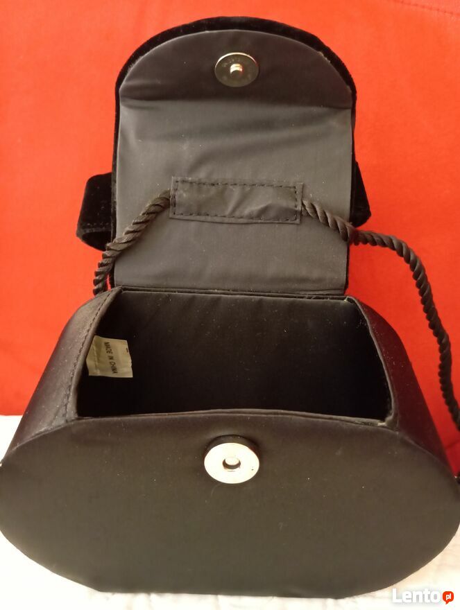 Torebka czarna z zamszu.Wymiary torebki szerokość17,5cm, wysokość 11,5cm, głębokość 8cm. Unikat .Gosia