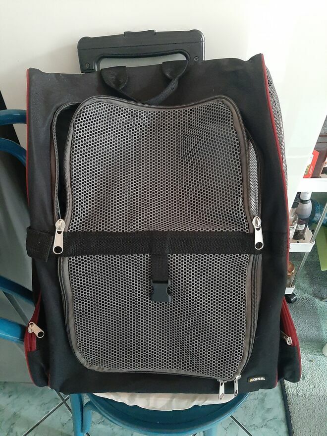 Wysokiej jakości plecak, torba na kółkach i transporter do samochodu - trzy w jednym - transporter niemieckiej marki Kerbl do przewozu psa lub kota.Odbiór osobisty w Bytomiu.Maksymalna waga przenoszonego zwierzęcia 10kg. Nam sprawdził się podczas górskich wędrówek z pieskiem.