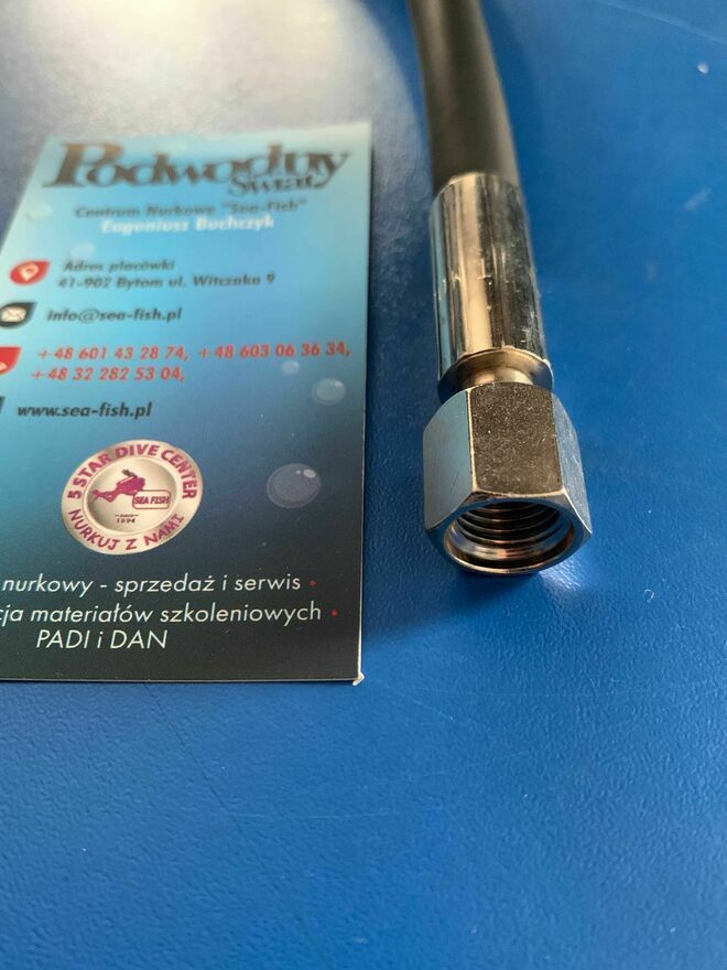 Wąż HP (wysokiego ciśnienia) do manometru, o długości 80 cm.Mamy w ofercie cały sprzęt do nurkowania. Zapewniamy serwis gwarancyjny i pogwarancyjny. Jeśli masz problem ze sprzętem nurkowym to dobrze trafiłeś (bo mamy serwis na miejscu) - zajmujemy się tym profesjonalnie od 1994 r.