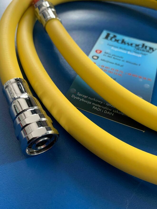 Wąż międzystopniowy żółty do octopusa o długości 120 cm.Mamy w ofercie cały sprzęt do nurkowania. Zapewniamy serwis gwarancyjny i pogwarancyjny. Jeśli masz problem ze sprzętem nurkowym to dobrze trafiłeś (bo mamy serwis na miejscu) - zajmujemy się tym profesjonalnie od 1994 r.