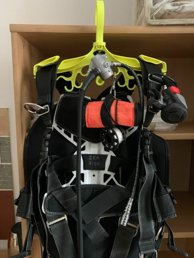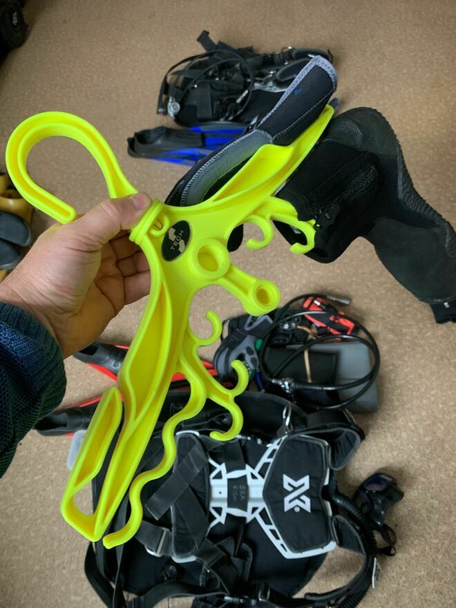 ( kolor wieszaka żółty jest tylko do pokazania jak można zawiesić sprzęt nurkowy)