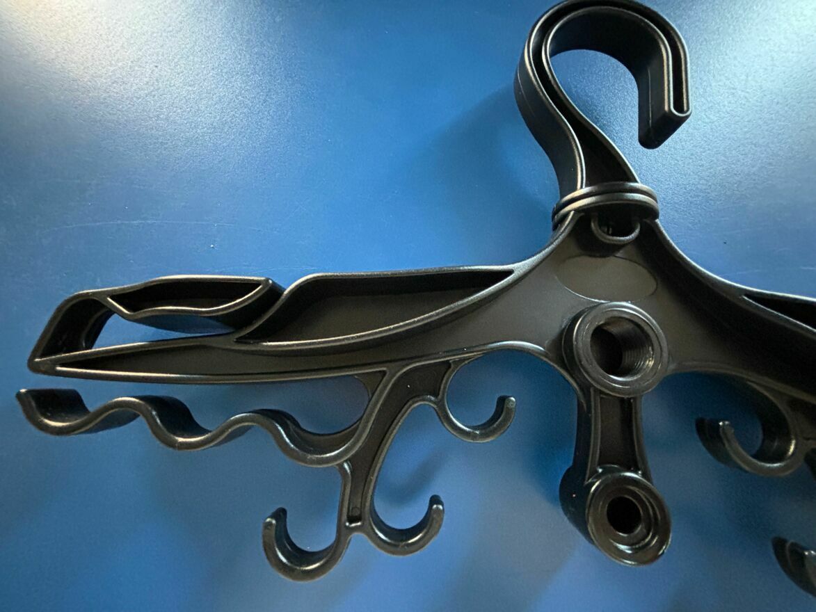 Główny wieszak na skafander (poprzeczka) i jacket (mocowania na ramionach). Specjalne mocowanie na buty. Gwit 5/8 cala który jest w jackiecie zobacz zdjęcie pasuje aby wkręcić automat DIN ale jeśli ma ktoś INT automat tez można go zamocować. Ważne jest ze uchwyt którym zawieszamy wieszak na drążku jest obrotowy to ułatwia nam obracanie i suszenie sprzęty.W sprzedaży mamy Kolor czarny.