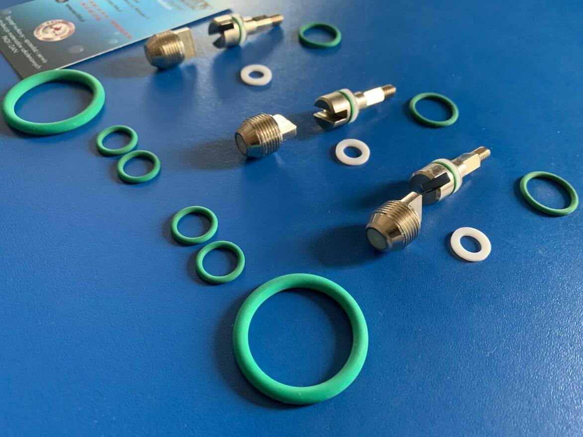 Zestaw serwisowy do manifoldu składający się tak jak na zdjęciu.Dodatkowo są tez oringi pod zawór butli dwie sztuki ostatnie zdjęcia są tylko obrazowo dane do czego są te części jako serwisowe do wymiany.