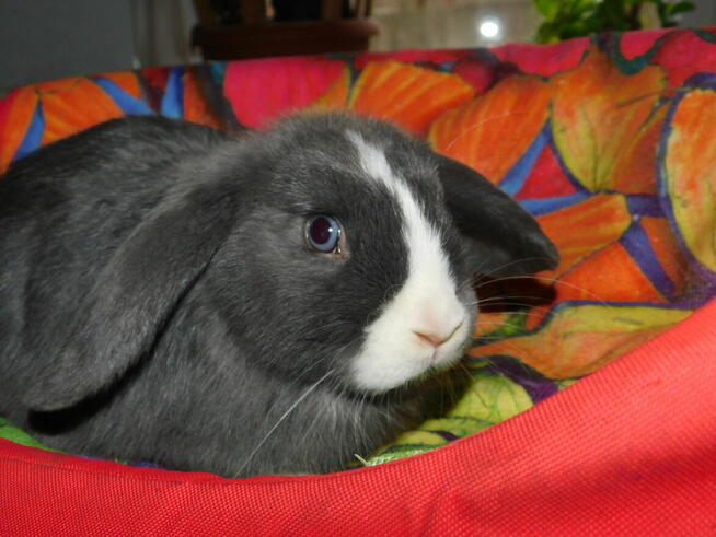 Sprzedam baranka mini lop samiczkę niebiesko- białą bardzo ładna urodzona 13 grudnia po małych półtora kilogramowych ...